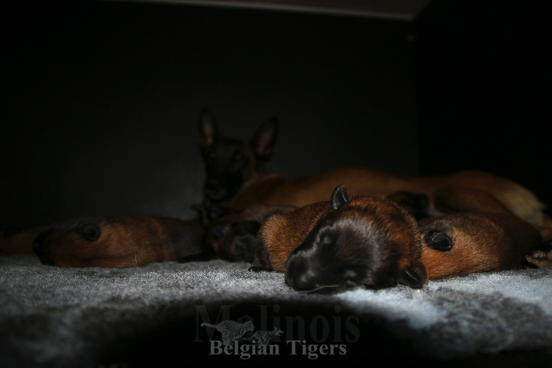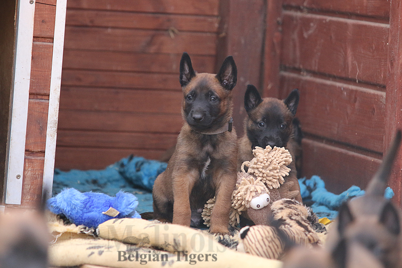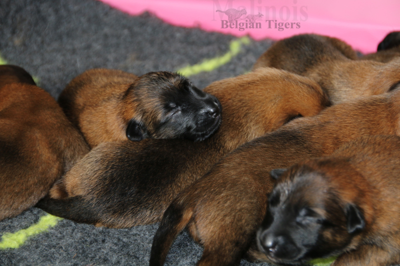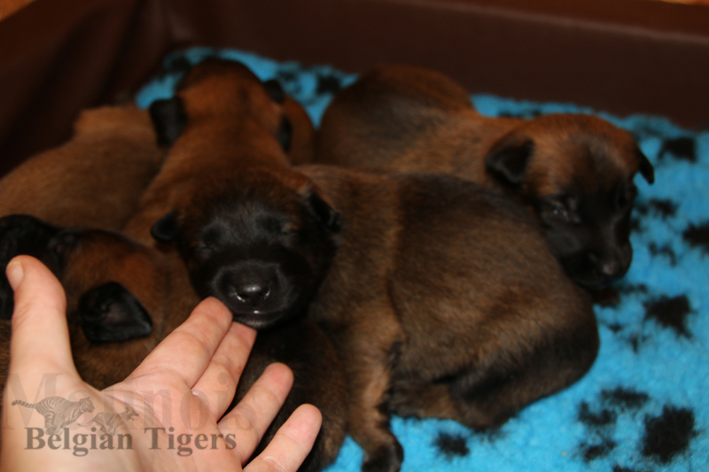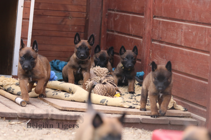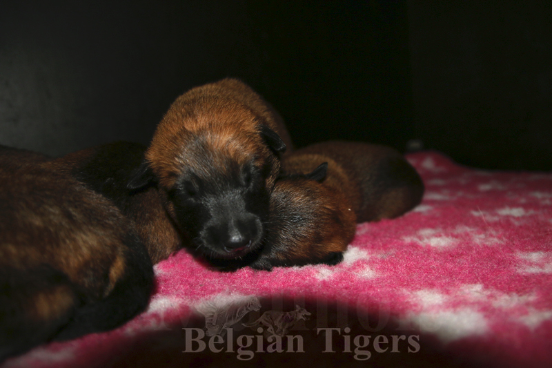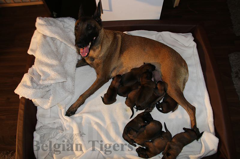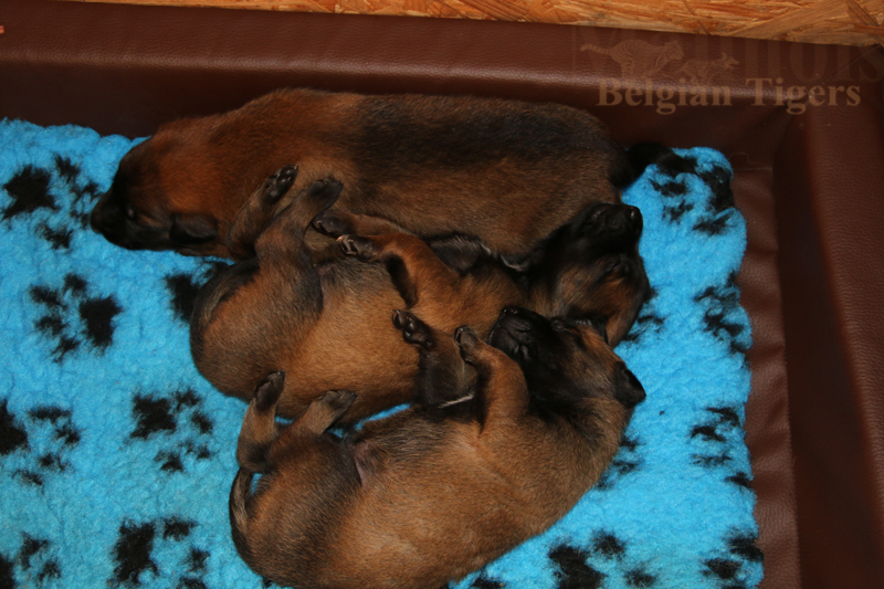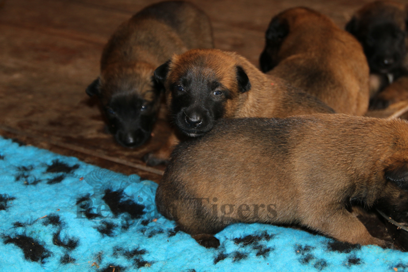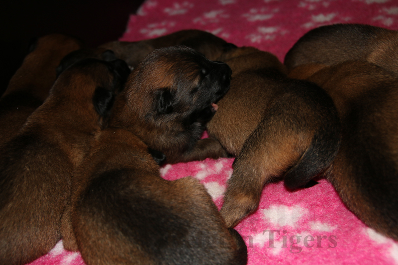 Alle malinoiden Tiger sind fit und rund, alle Buben sind ausgestattet mit je zwei kleinen Eiern :), alle Welpen haben ordendlich entwickelte Scherengebisse und alle sind recht lustig drauf und offen in alle Richtungen.
