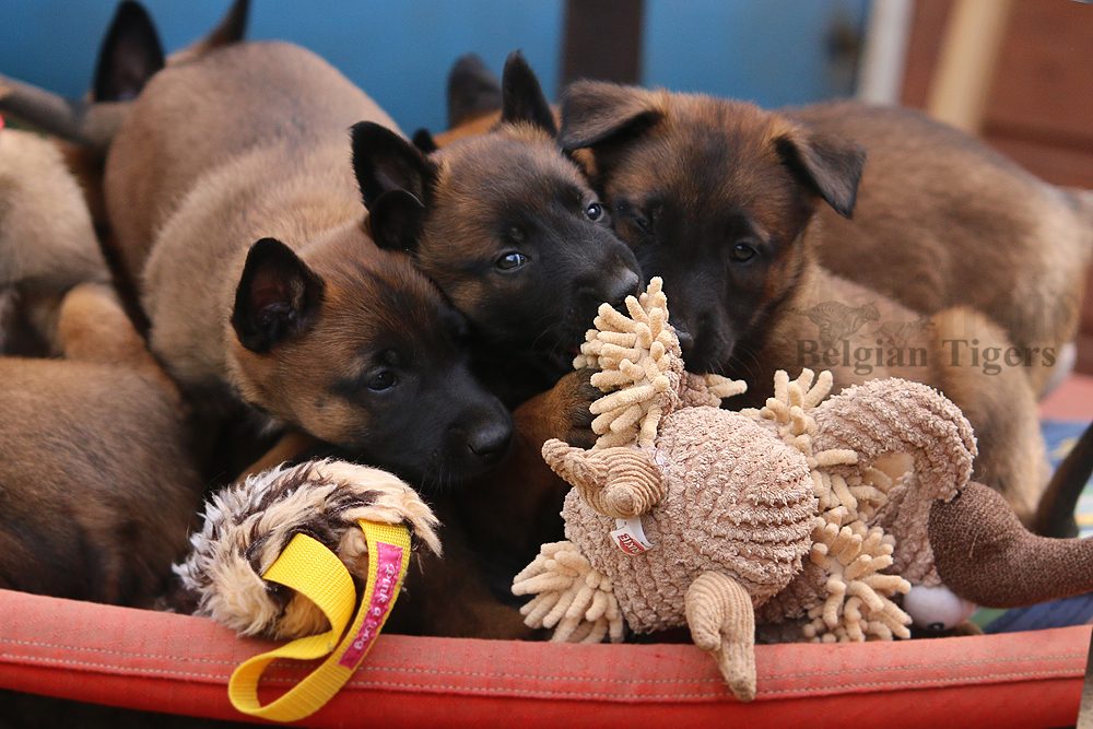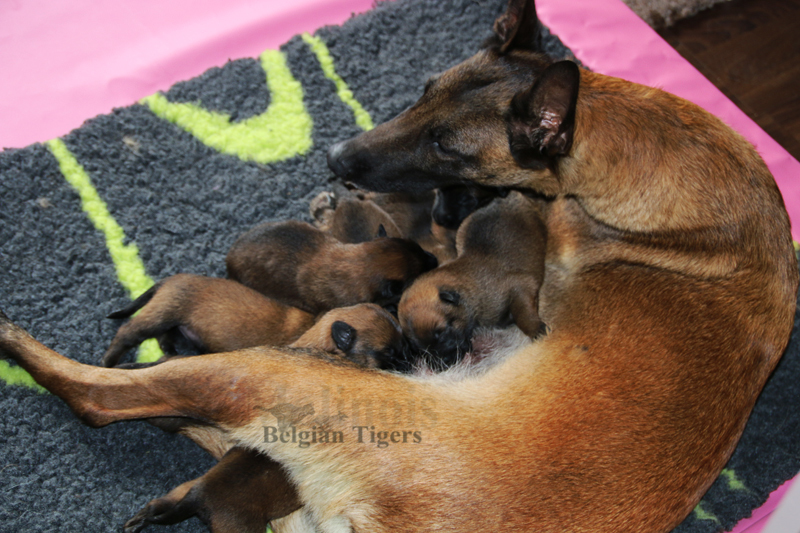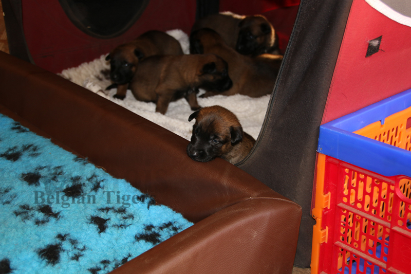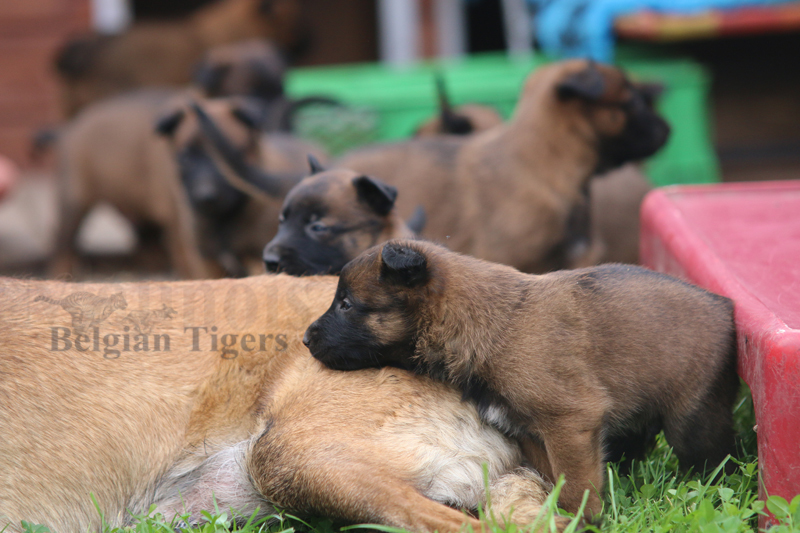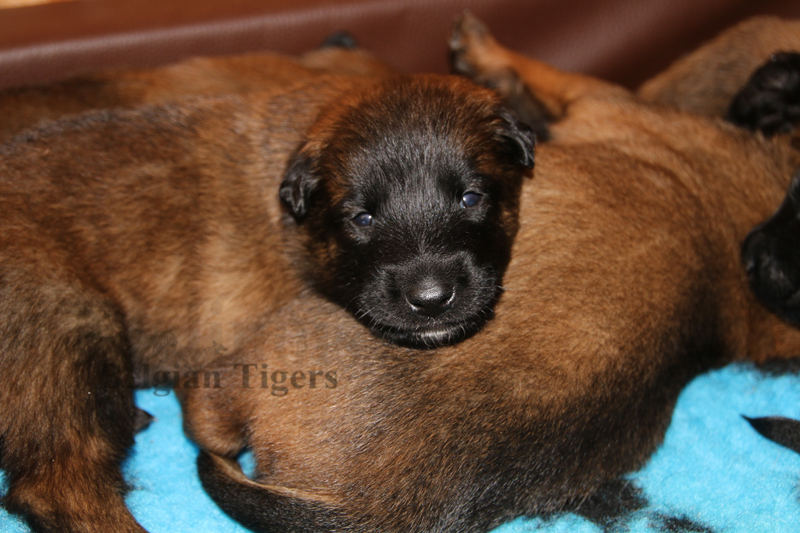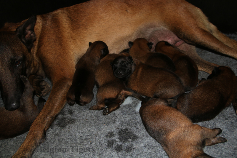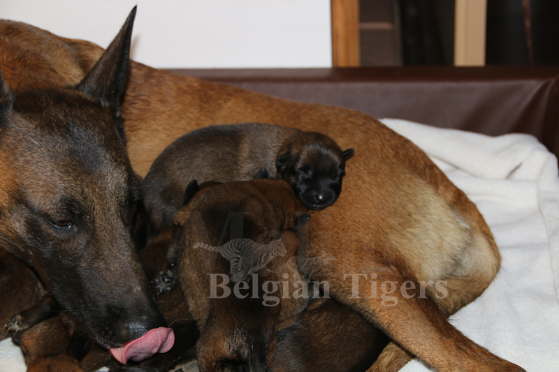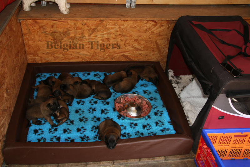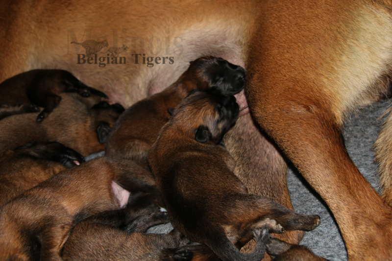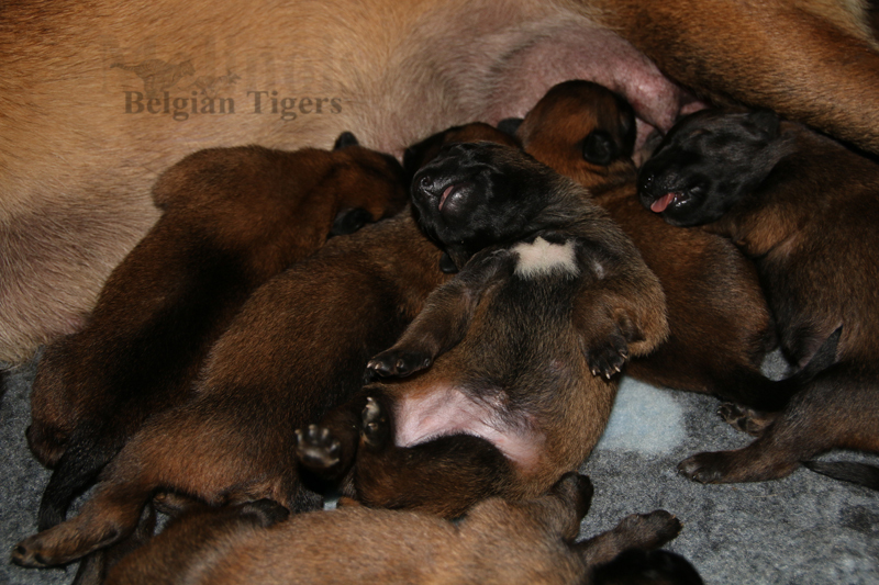 Alle malinoiden Tiger sind fit und rund, alle Buben sind ausgestattet mit je zwei kleinen Eiern :), alle Welpen haben ordendlich entwickelte Scherengebisse und alle sind recht lustig drauf und offen in alle Richtungen.