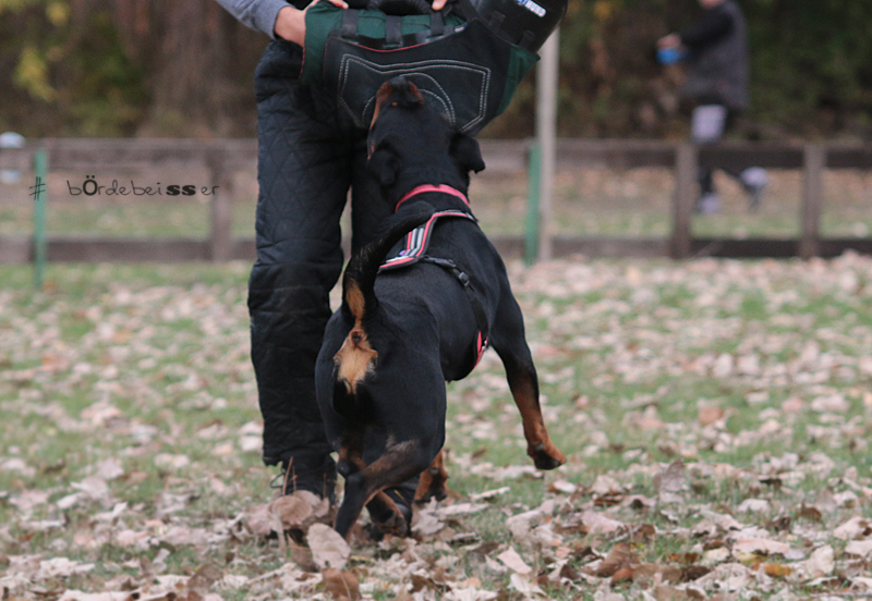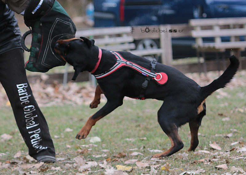 Sie hat einen schönen, regelbaren Spieltrieb, einen sehr hohen Futtertrieb, eine richtig gute Nasenveranlagung, sie ist sauschnell und hat ein hammer Sprungvermögen. Zudem bringt sie eine tolle Arbeitsbereitschaft mit.
